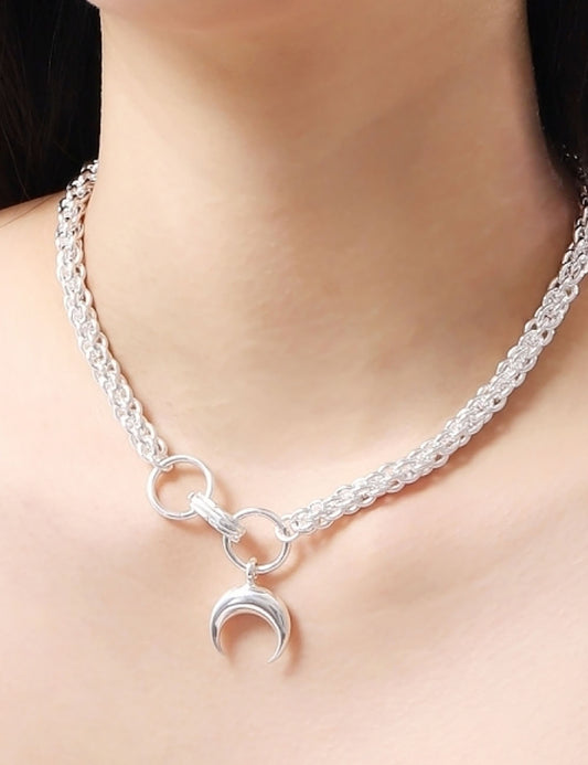 MARINE SERRE PEWTER MOON BRAIDED CHAIN