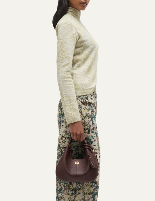 GANNI HOBO MINI GRAINED CHICORY COFFEE