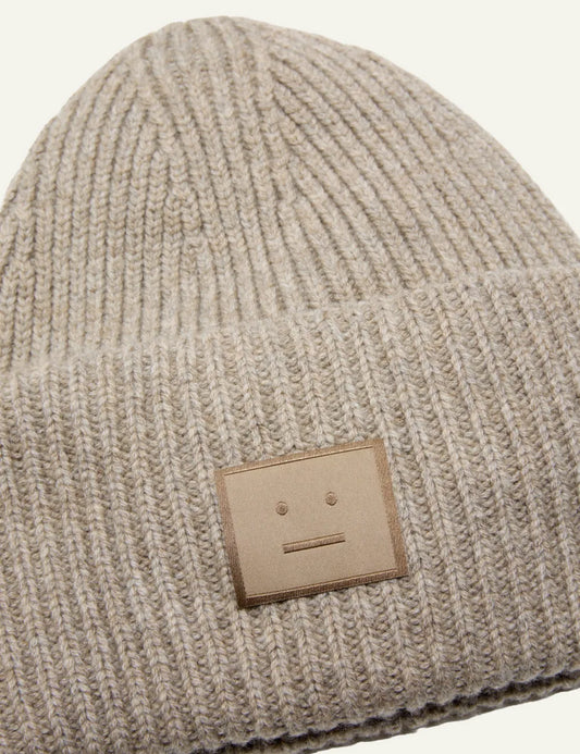 ACNE STUDIOS LARGE FACE LOGO BEANIE - YAK GREIGE MELANGE
