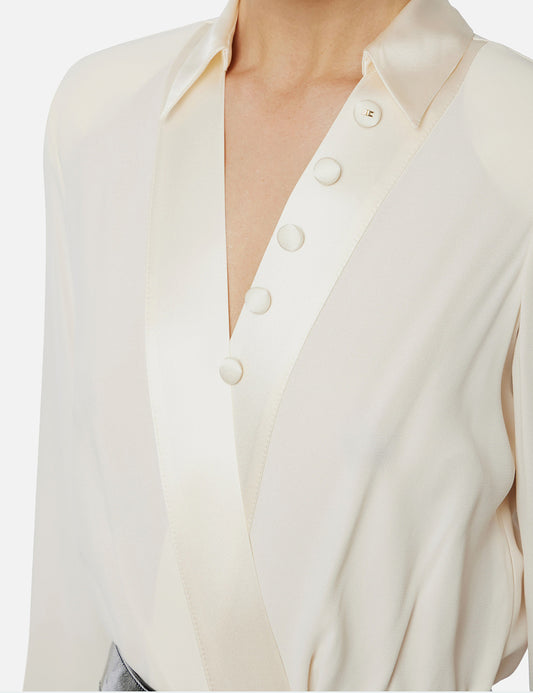 Elizabetta Franchi Jumpsuit in satin and viscose georgette fabrics milk
