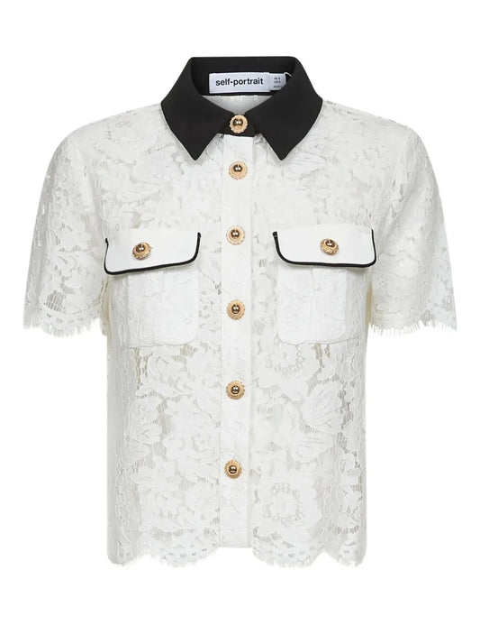 SELF-PORTRAIT CONTRAST COLLAR TOP