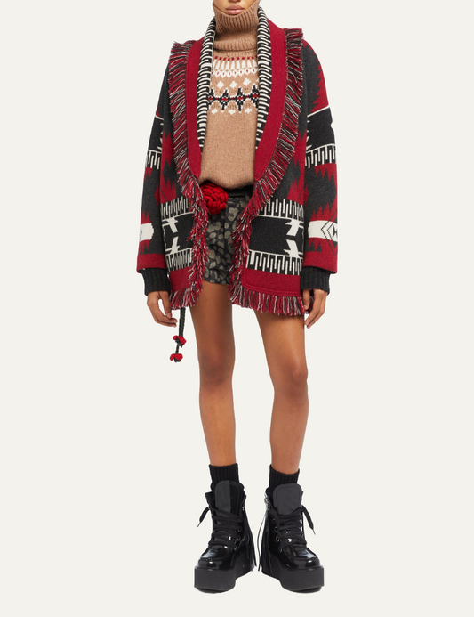 new ΕξαντλήθηκεALANUI ICON JACQUARD CARDIGAN RUBY CARCOAL