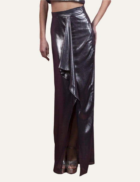 STUDIO 83 LONG LEATHER SKIRT BROWN