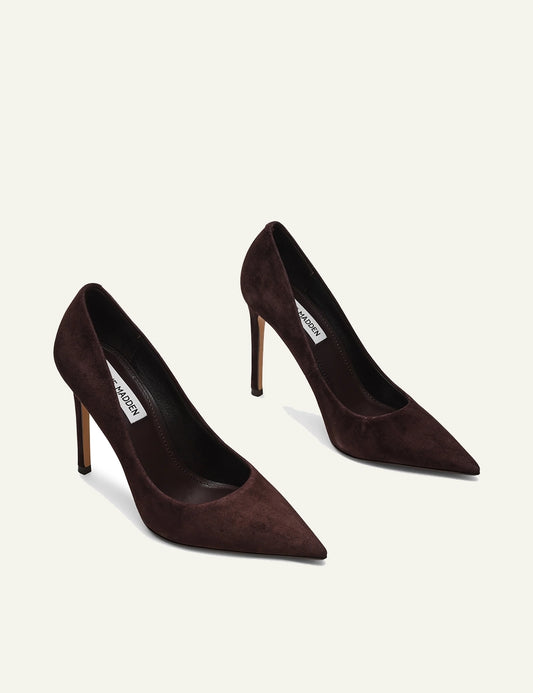 STEVE MADDEN THRIVE HEELS IN BROWN SUEDE