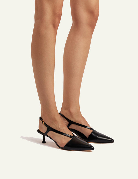 CARRANO LEATHER SLINGBACK HEELS BLACK