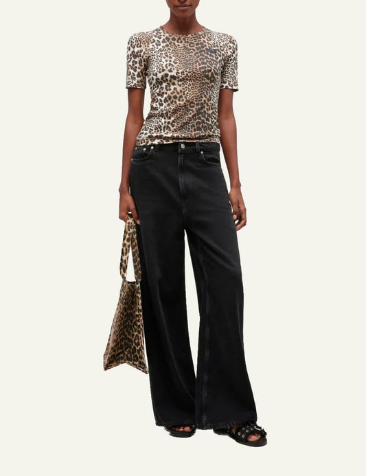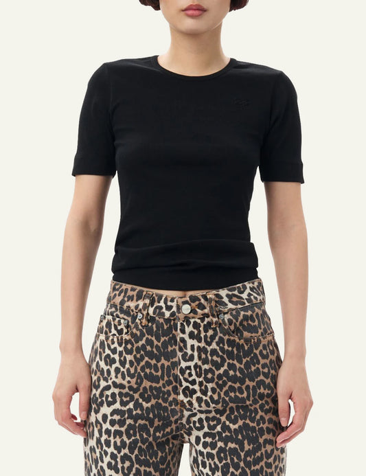 GANNI RIB SHORT SLEEVE T-SHIRT BLACK