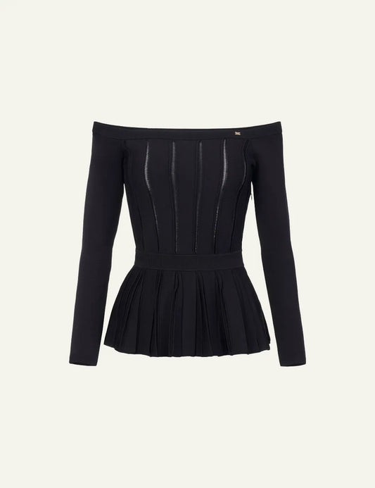 ELISABETTA FRANCHI Viscose knit top with peplum