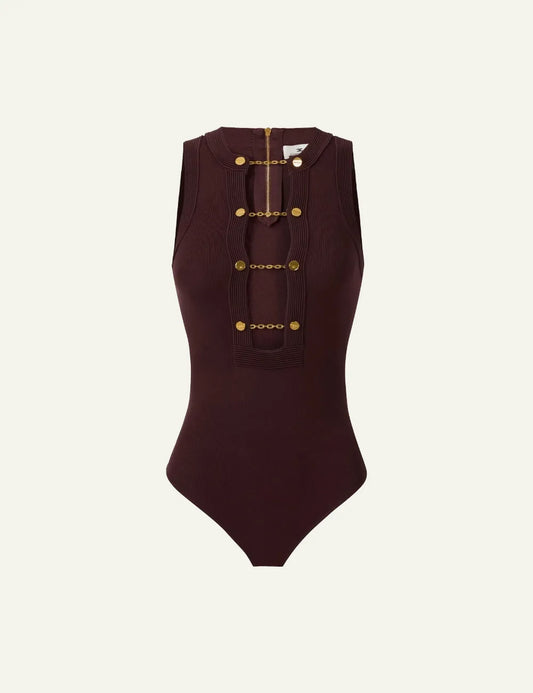 ELISABETTA FRANCHI Viscose knit bodysuit with jewel cufflinks