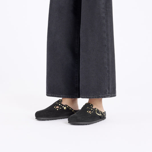 BIRKENSTOCK LEATHER BOSTON RIVET LEVE BLACK