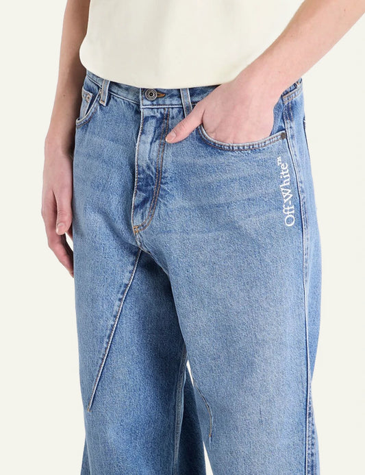 OFF WHITE HALF ARROW TWISTED FLARE PANTS LIGHT MEDIUM BLUE