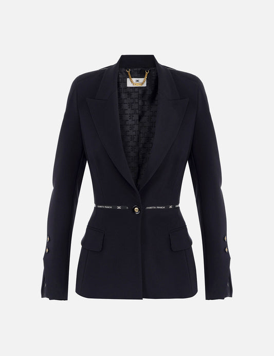 Elizabetta Franchi Jacket in crêpe fabric with logo ribbon