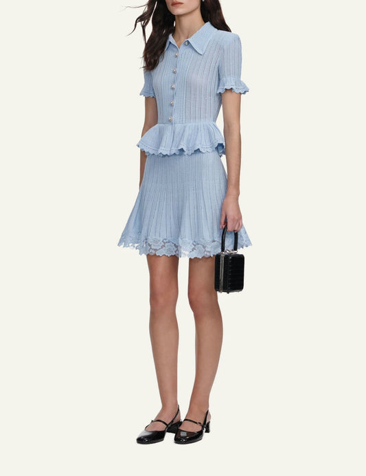 SELF-PORTRAIT PEPLUM KNIT MINI DRESS BLUE