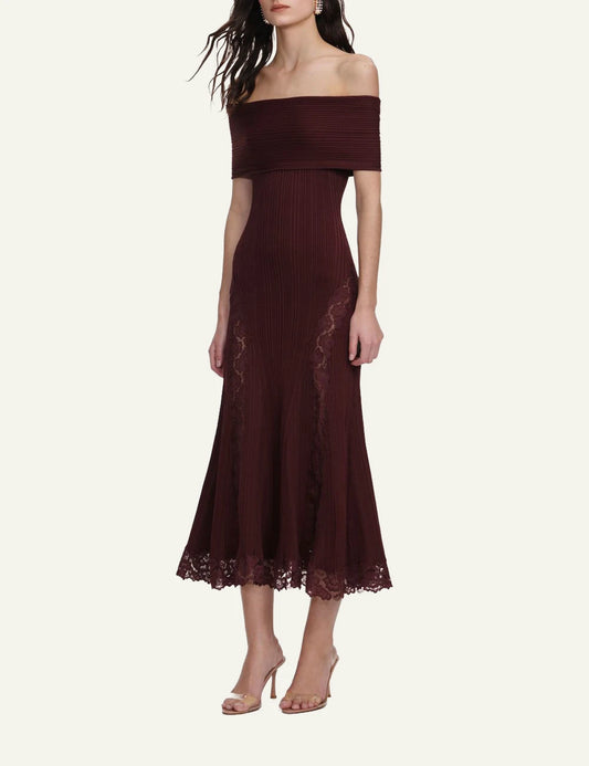 SELF-PORTRAIT LACE MIDI DRESS BURGUNDY