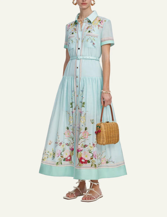 SELF-PORTRAIT ORGANZA MIDI DRESS GREEN