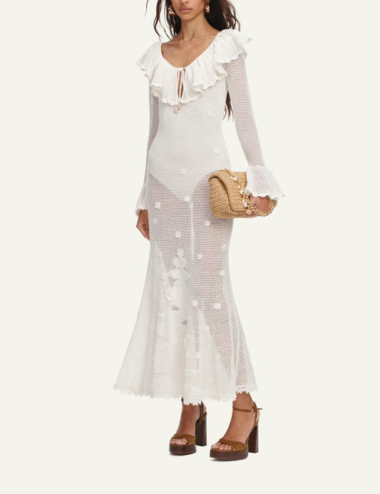 SELF-PORTRAIT CROCHET MIDI DRESS WHITE