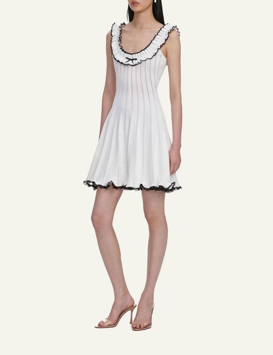 SELF-PORTRAIT TRIM KNIT MINI DRESS WHITE