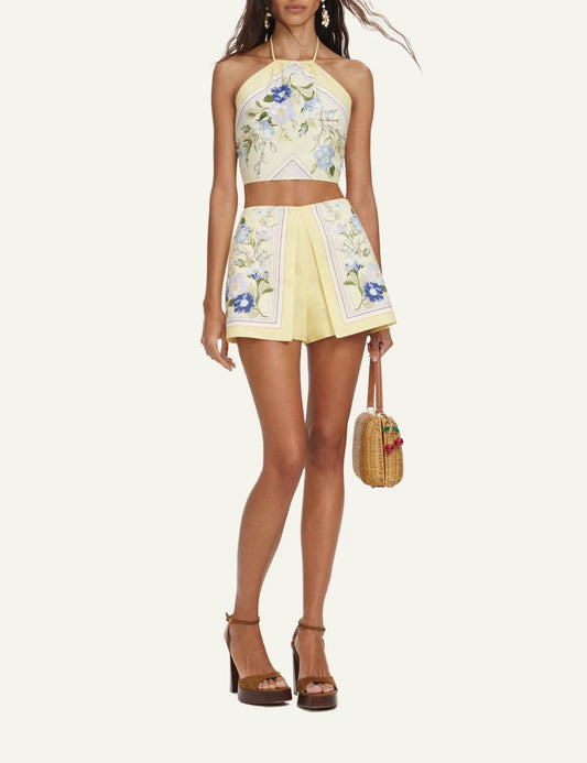 SELF-PORTRAIT FLORAL LINEN SHORTS YELLOW
