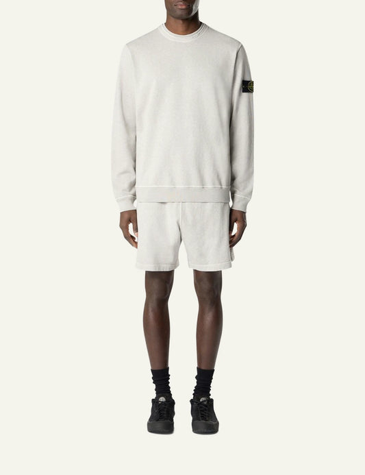 STONE ISLAND MALFILÉ FLEECE 'OLD' EFFECT PEARL GREY