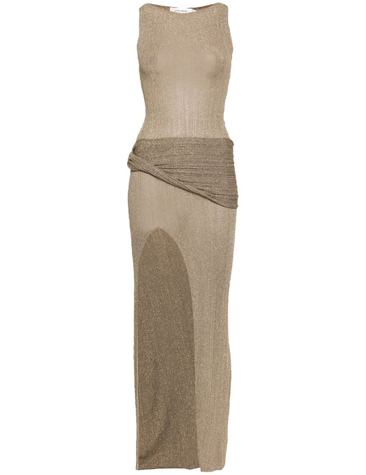 OFF WHITE LIGHT RIB EMB 20S LONG DRESS