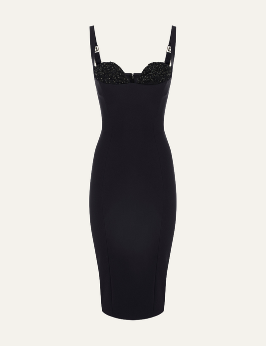 ELISABETTA FRANCHI Dress in lightweight crêpe fabric with crystals