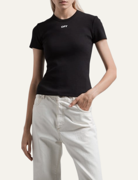 Έκπτωση -50%OFF WHITE OFF STAMP RIB BASIC TEE