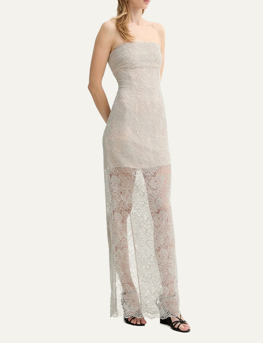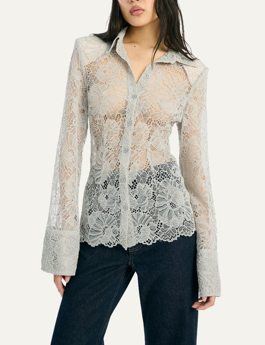 ROTATE 3D LACE FLARED MIDI DRESS NAVY BLAZER