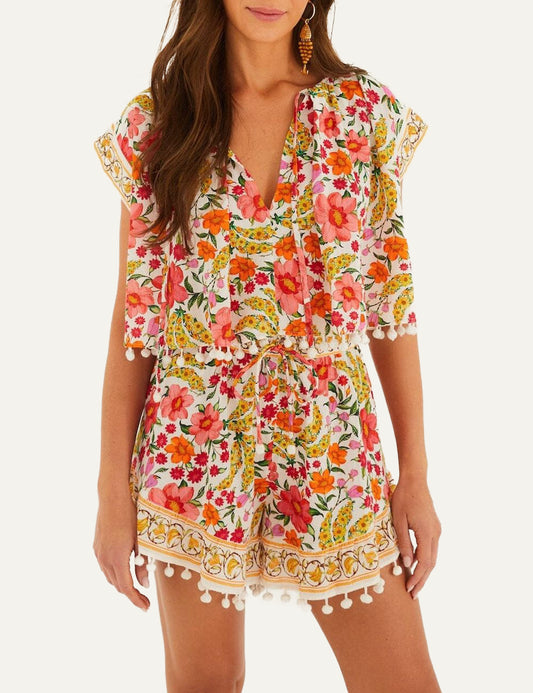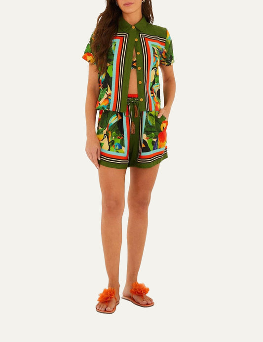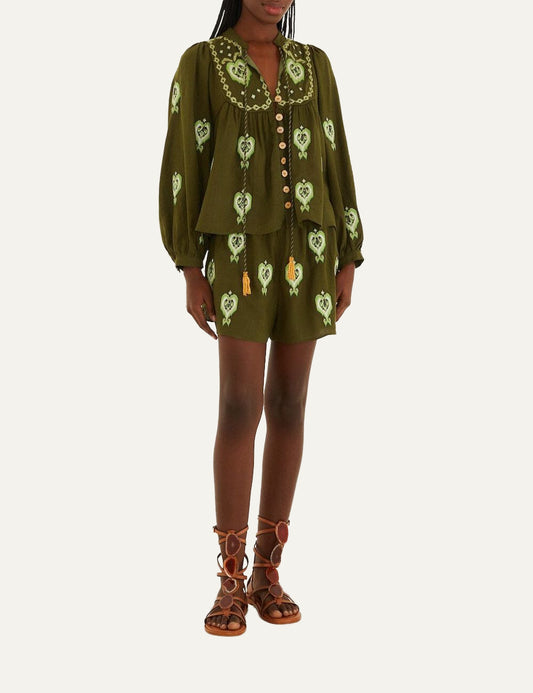 FARM RIO Green Heart Tapestry Embroidered Shorts