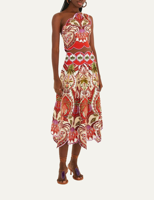 FARM RIO Sand Guanacaste Cut-out Waist Sleeveless Midi Dress