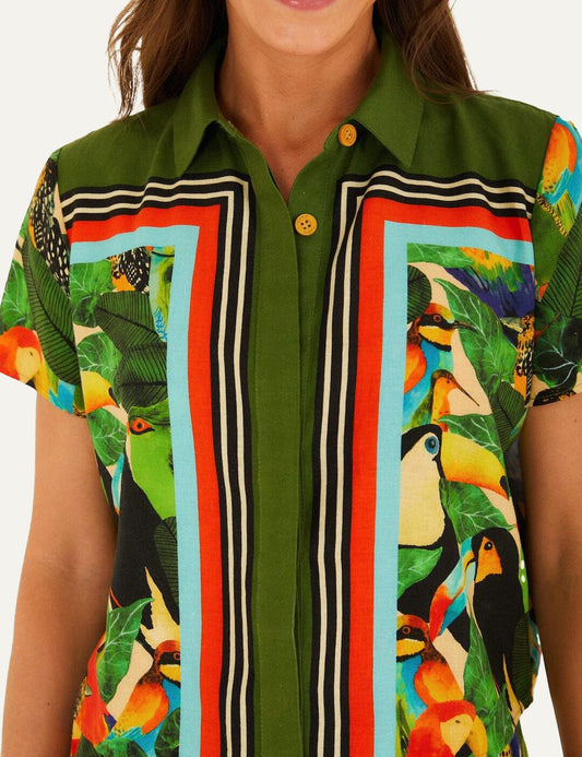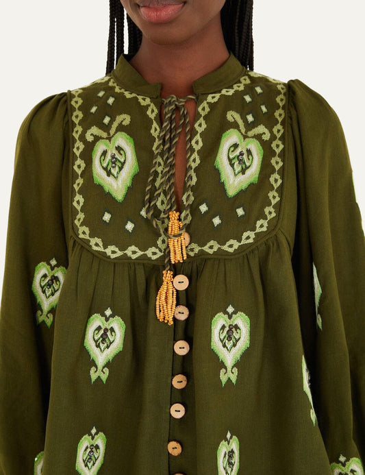 FARM RIO Green Embroidered Puff Sleeve Blouse