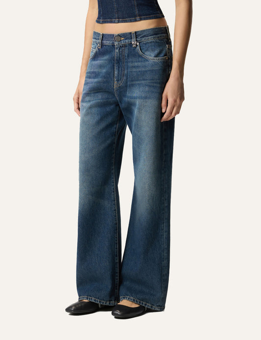 PINKO WANDA WIDE LEG MEDIUM DARK VINTAGE WASH