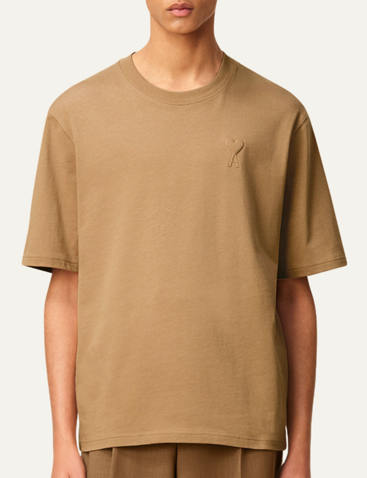 AMI BIG ADC EMBOSSED TSHIRT CAMEL