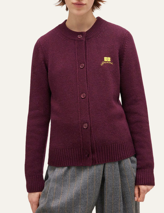 GANNI CORE FUTURE CARDIGAN BURGUNDY