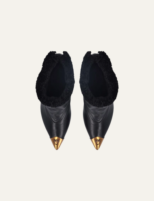 PINKO BOOTIES WITH FAUX FUR AND METAL TOE BLACK
