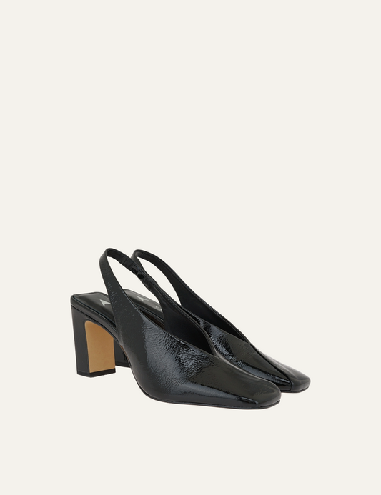CARRANO BLACK VERNI LEATHER SLINGBACK HEELS