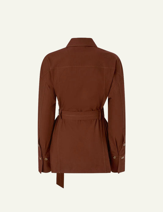 • Pinko Cheryl cotton twill overshirt brown with belt front view