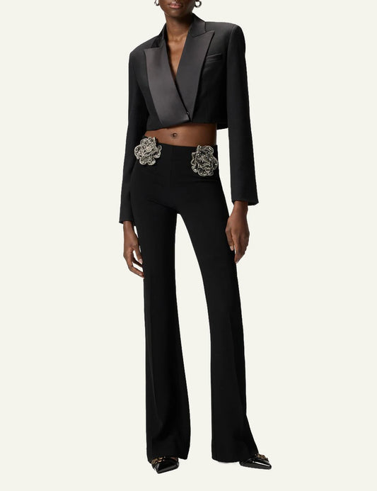 • Pinko Cocomero flared trousers black with crystal roses front view