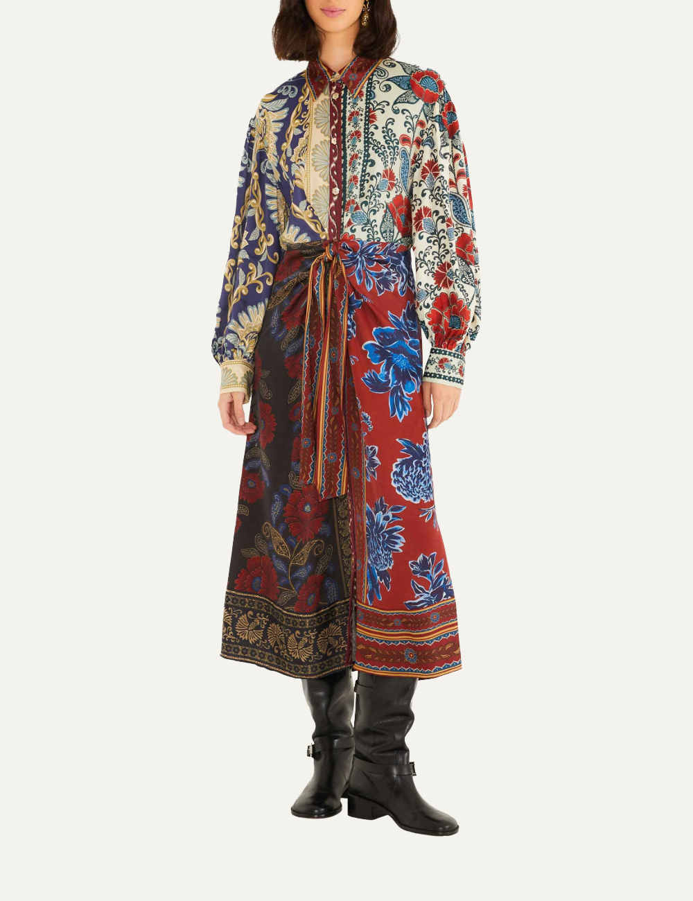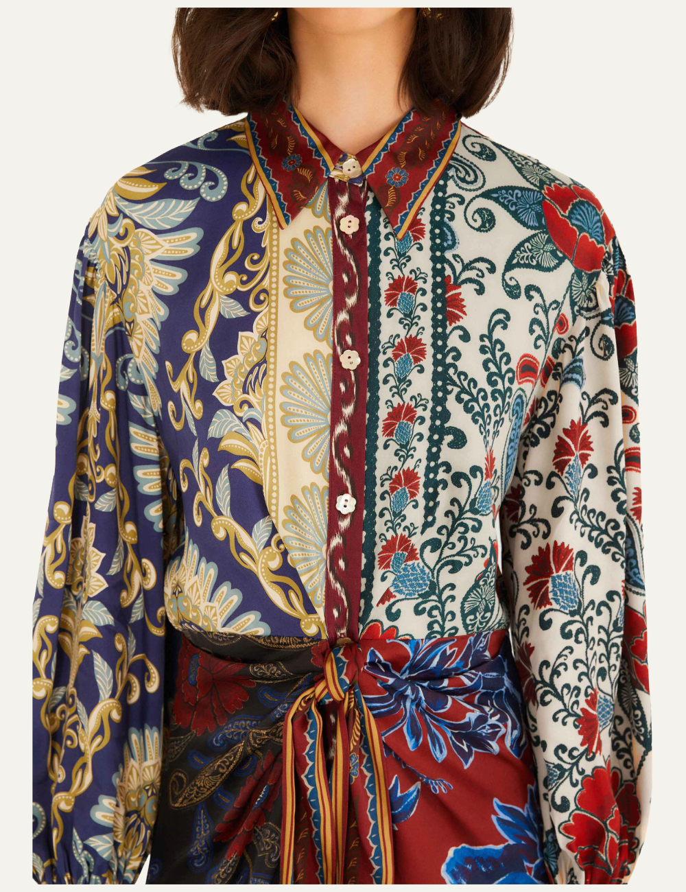 - Patchwork με φλοράλ και paisley μοτίβα σε navy, καφέ και κρεμ τόνους