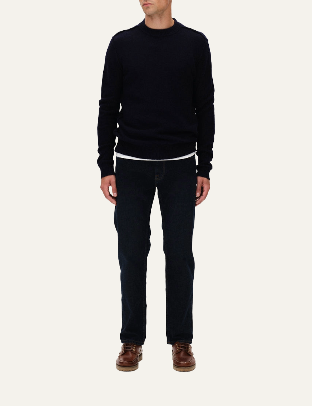 - Σκούρο μπλε denim με dark rinse πλύσιμο