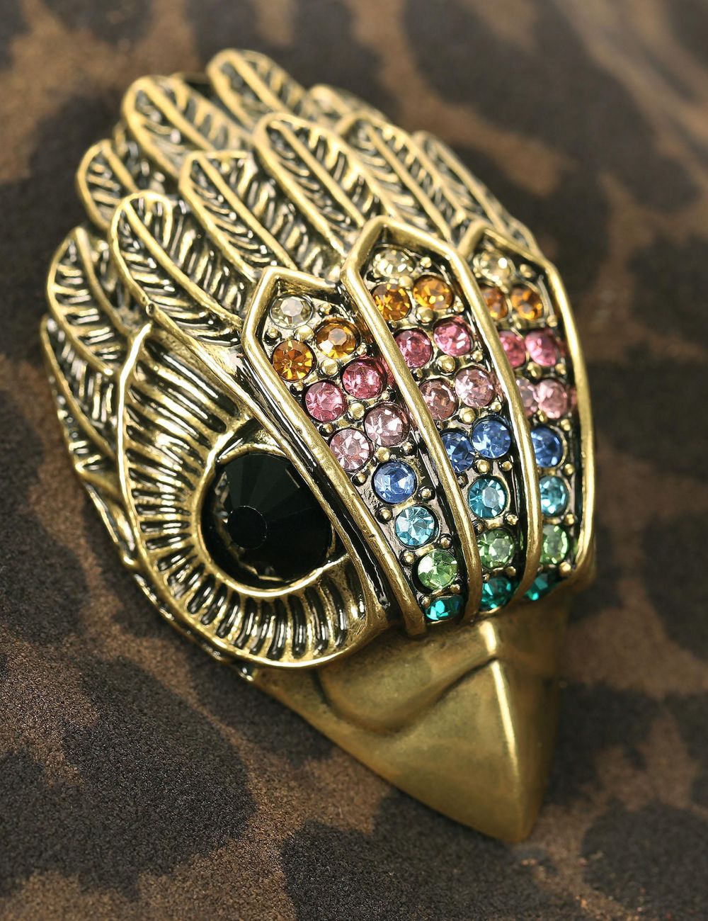 • Μεγάλο κεφάλι αετού από antiqued brass στο μπροστινό μέρος