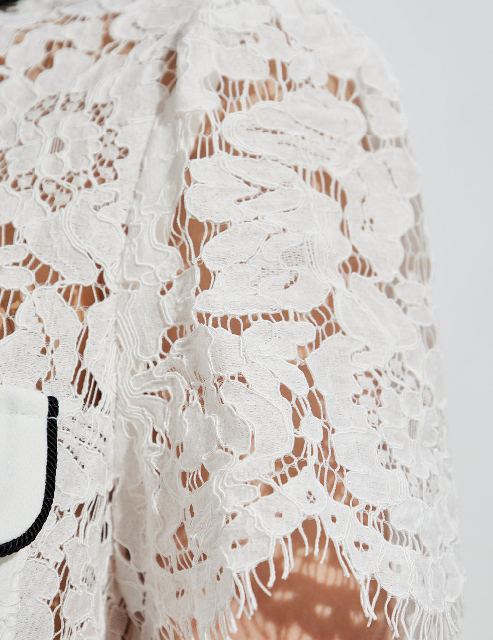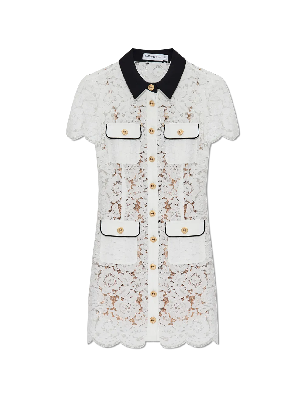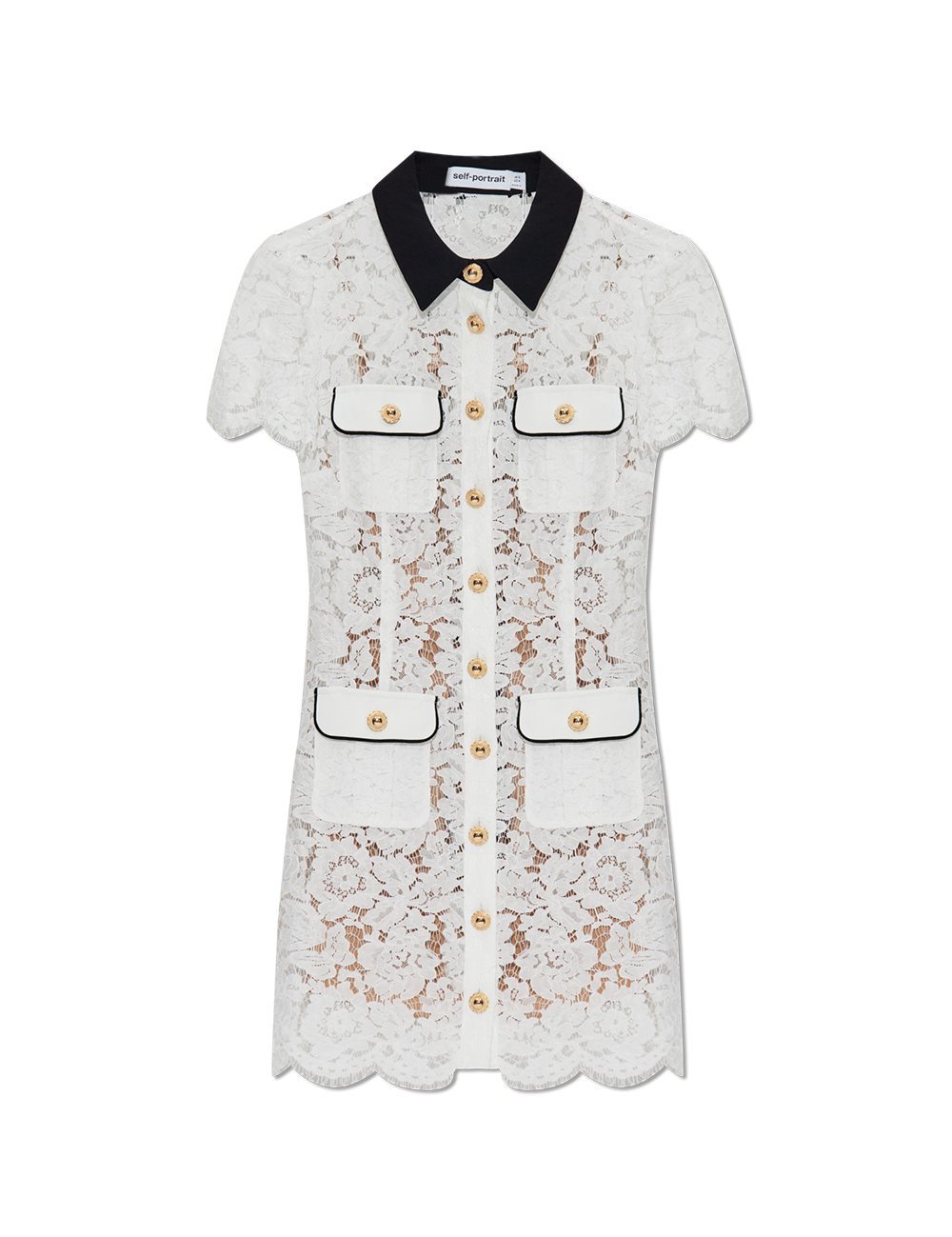 • Mini Φόρεμα από λευκή δαντέλα με διακριτικό floral μοτίβο