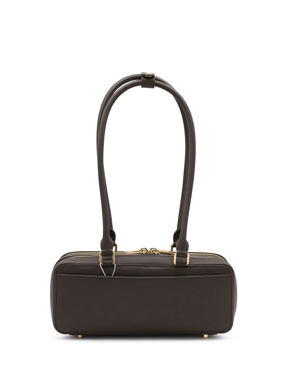 • Τσάντα ώμου σε σκούρο καφέ τόνο
