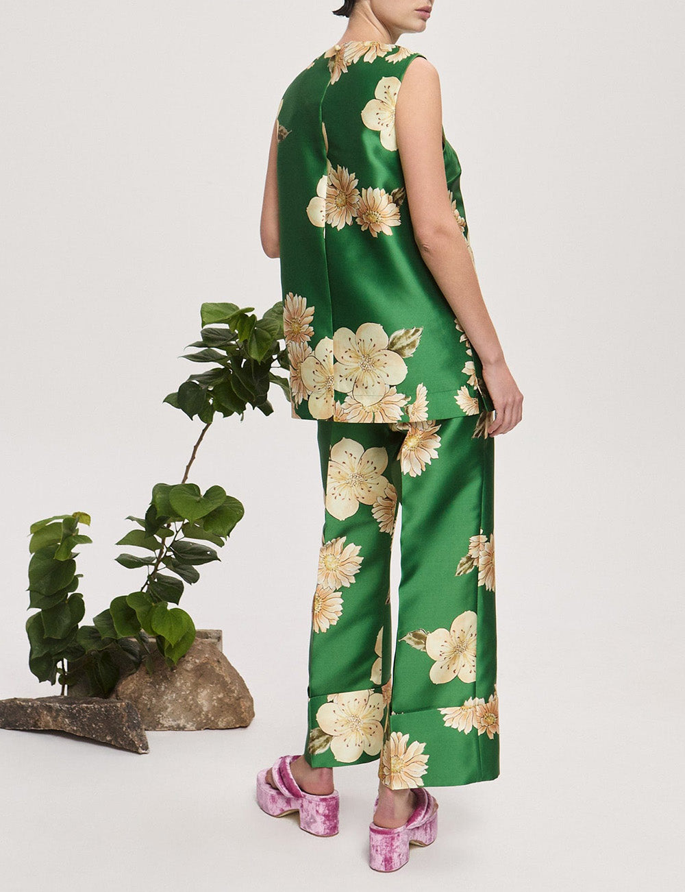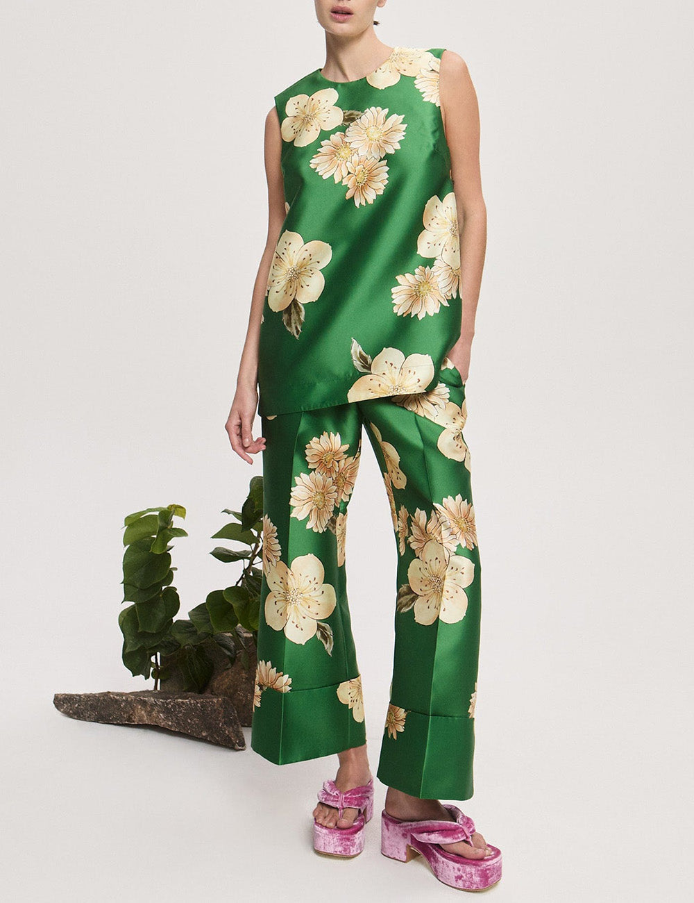 - Φλοράλ μοτίβο σε πράσινη βάση με κίτρινες και ροδακινί λεπτομέρειες