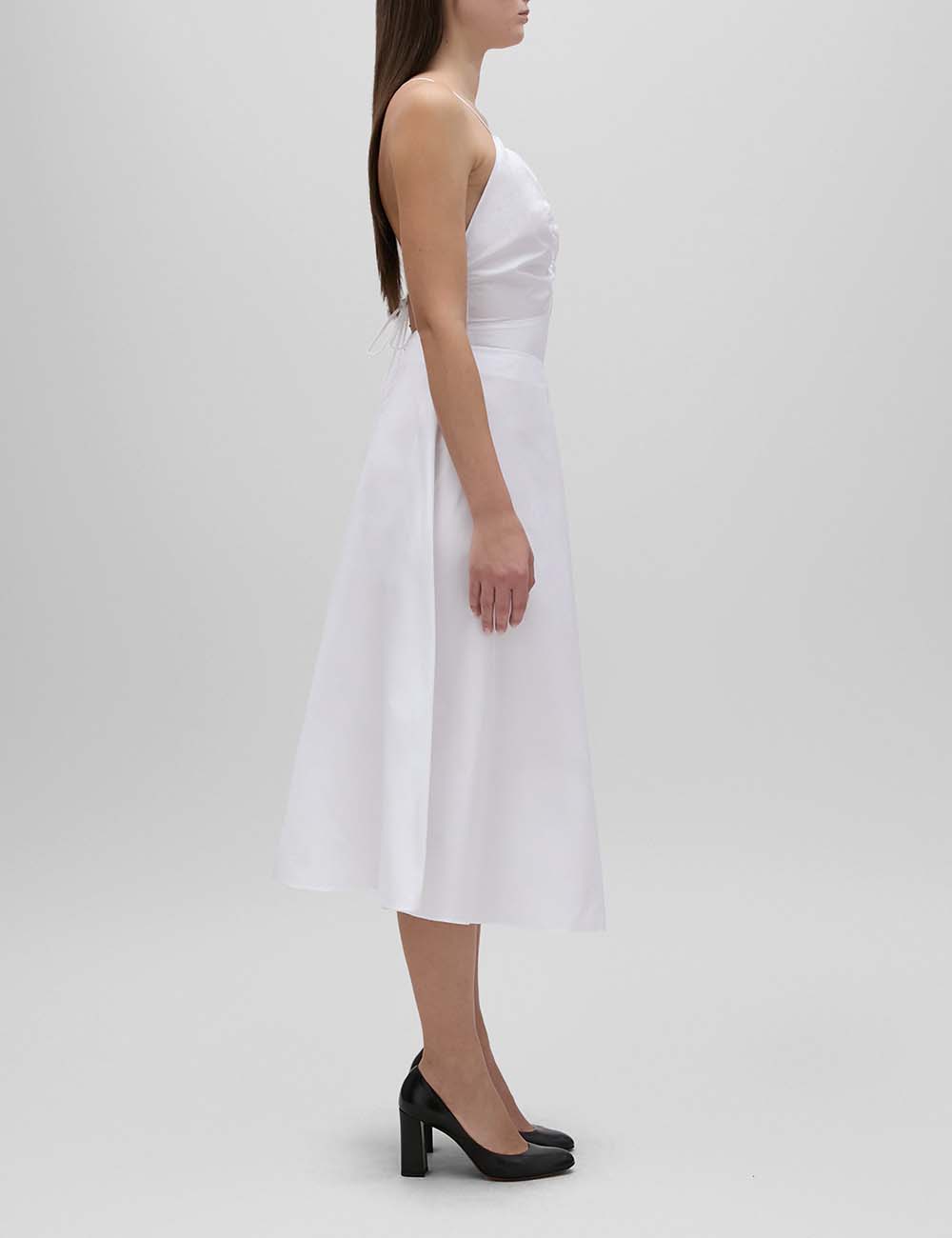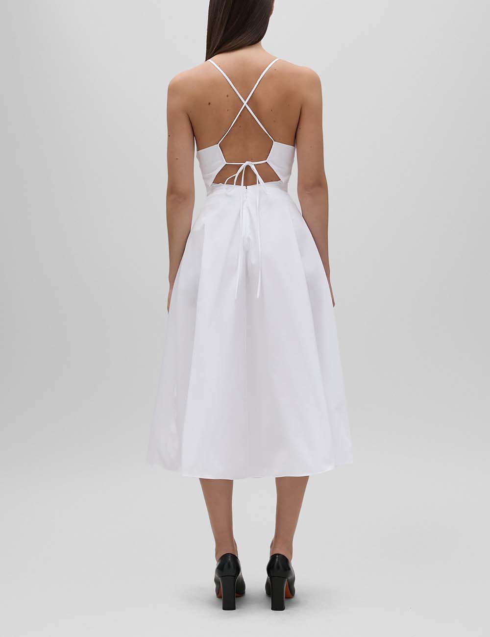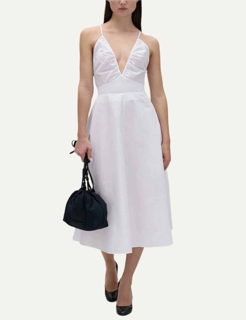 - Φόρεμα midi με λεπτές τιράντες και βαθύ ντεκολτέ