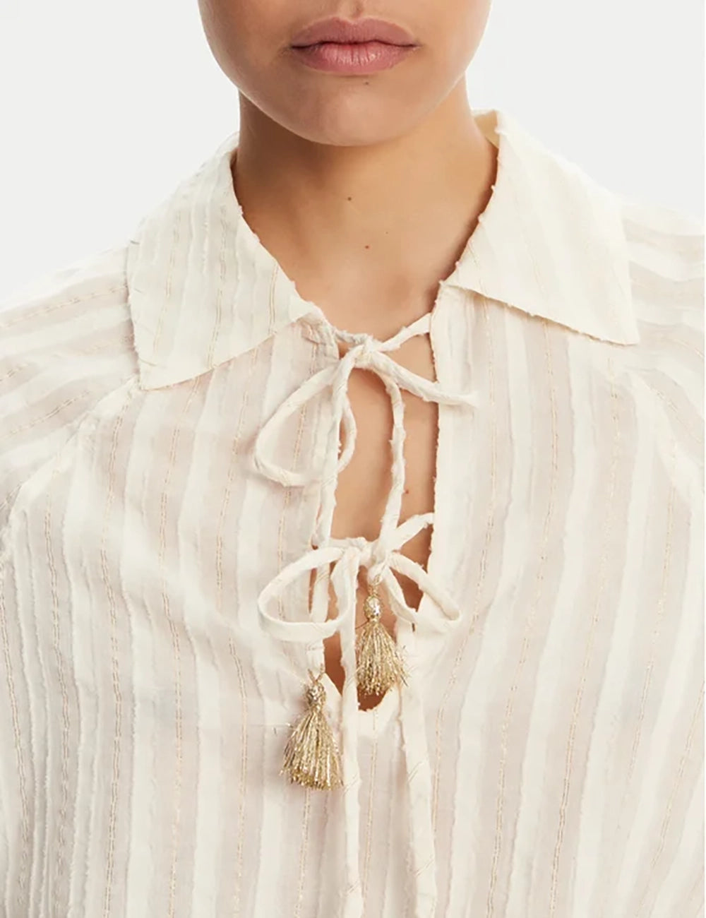 • Ριγέ μοτίβο σε εκρού απόχρωση
