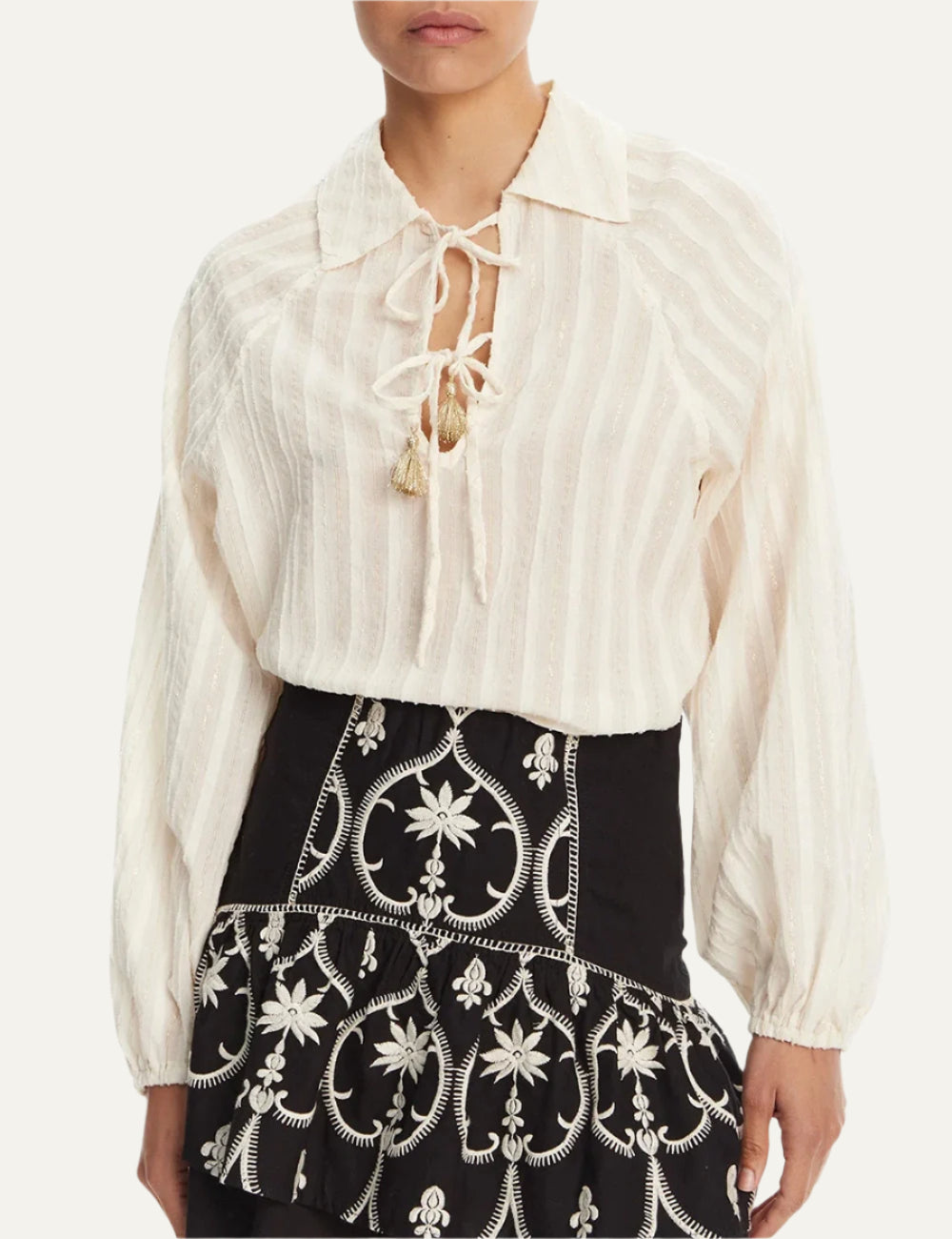 • Κλείσιμο με κορδόνια και φουντάκια στο ντεκολτέ