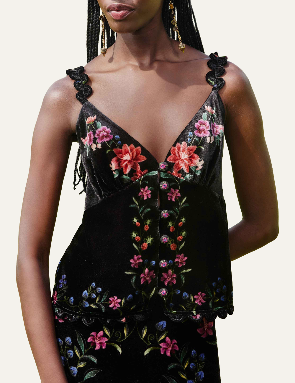 - Γυναικείο τοπ Black Belle Garden Scallop σε βελούδο