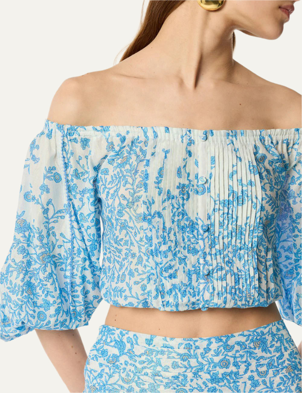 - Τοπ με έξω τους ώμους και λεπτομέρεια πιέτες μπροστά