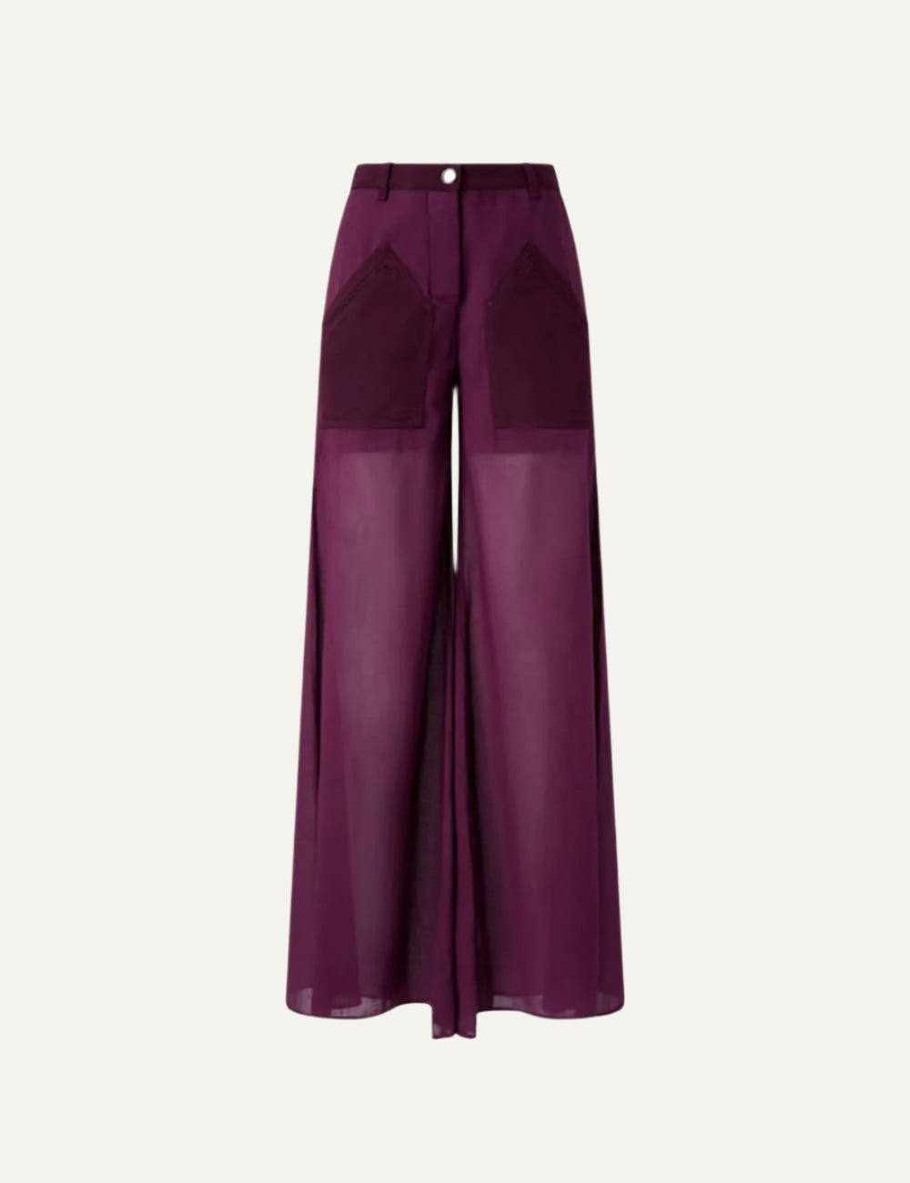 - Παντελόνι σε φαρδιά γραμμή με εντυπωσιακή διαφάνεια