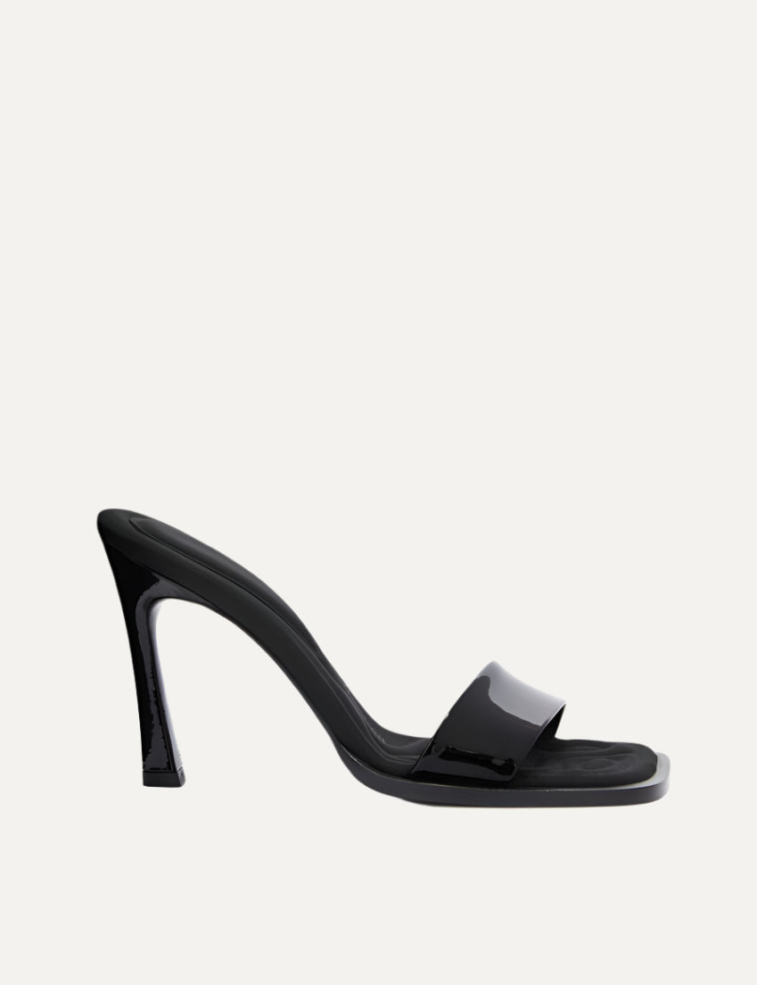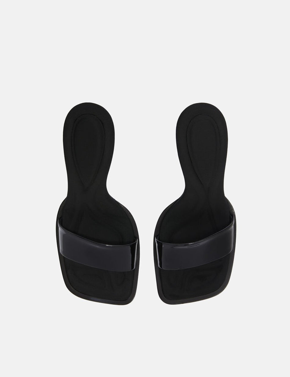 • Mule ‘‘Mia’’ σε μαύρο λουστρίνι και νεοπρένιο